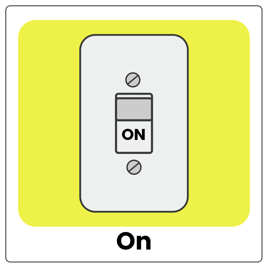 On Download Image + Add to My Visual Cues Brief Description Working or being used right now. How to Talk About This Term with Young Children “When the light switch is off, the light shines.” Word Pairs Off (Power) < Back to Visual Cues