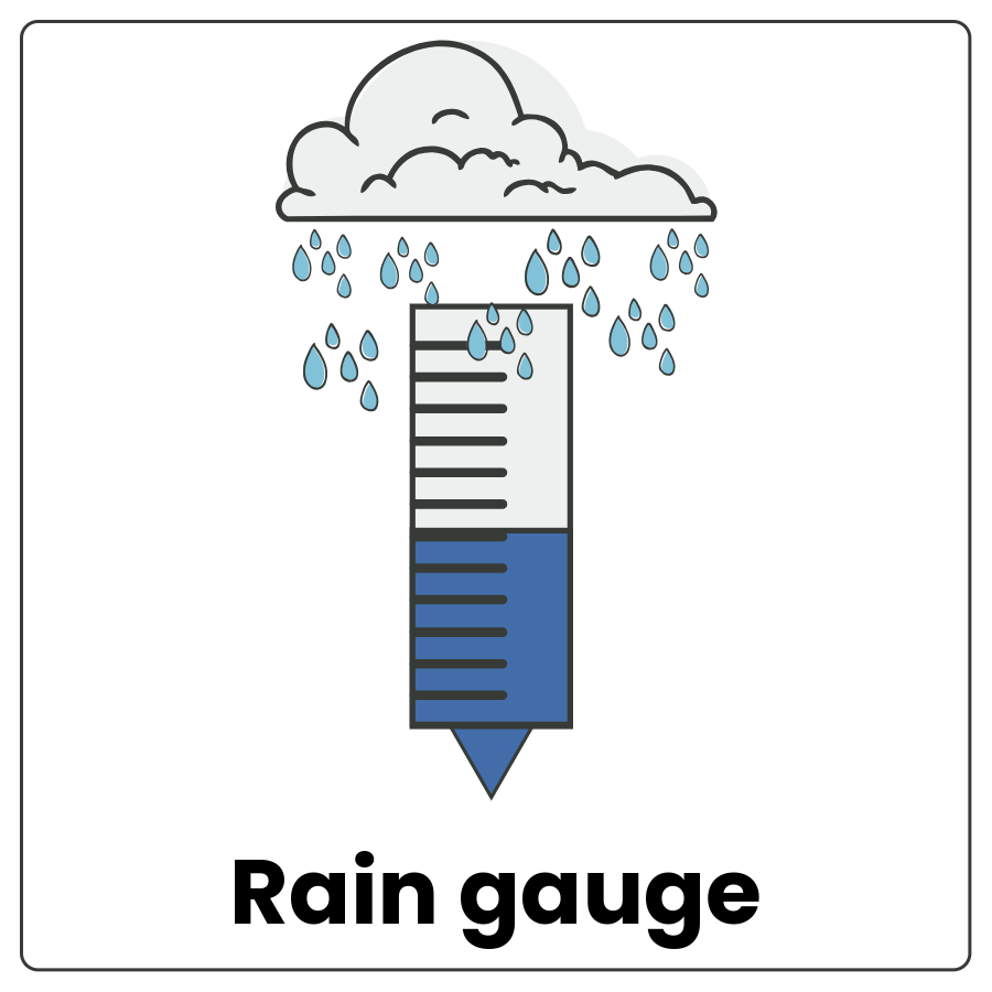 “Scientists use a rain gauge to figure out how much rain is falling in a particular area.”