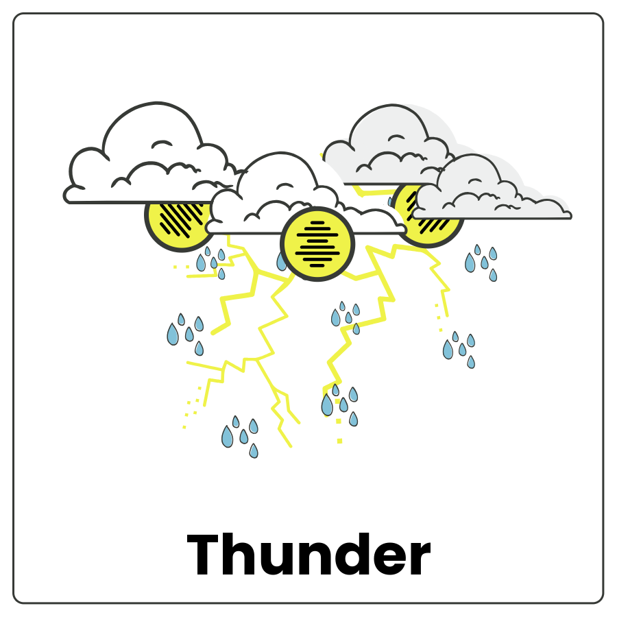 The sound that comes after a flash of lightning. It’s created by the rapid heating then cooling of air when lightning strikes.
