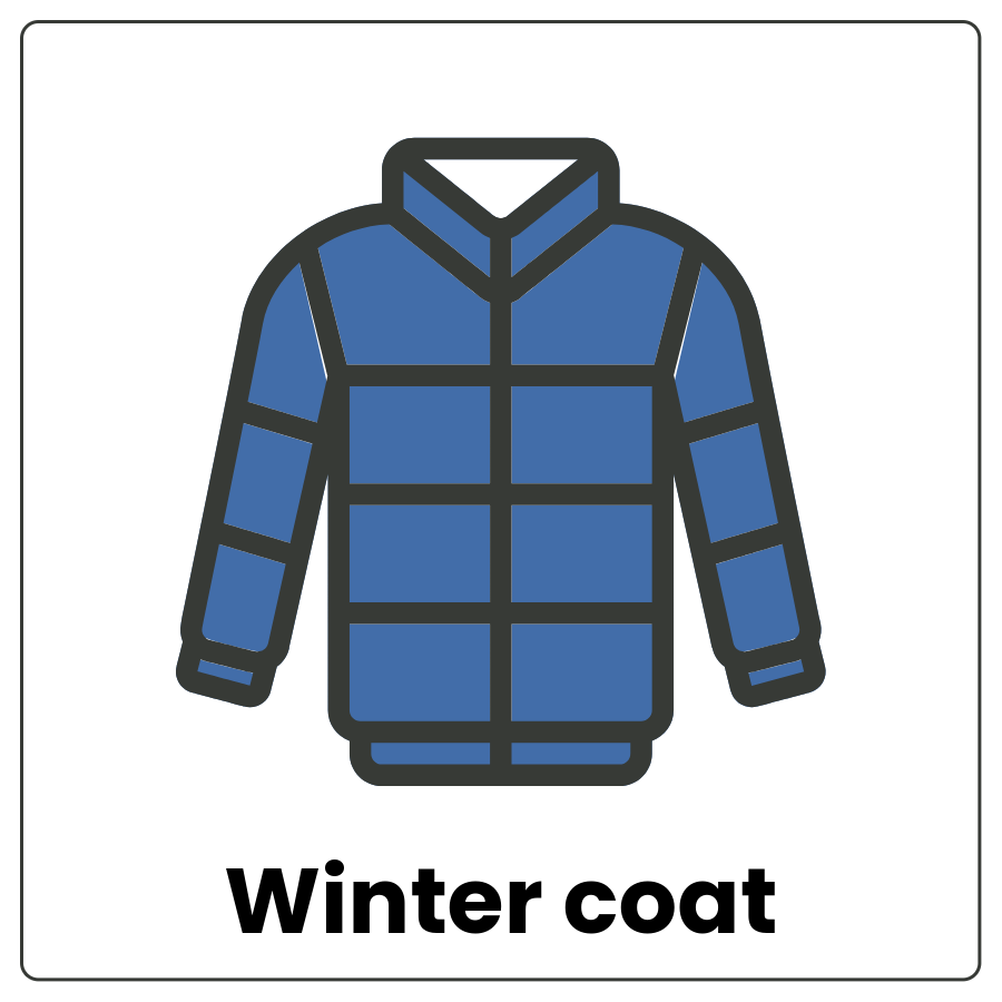 “It’s snowing outside and the lake is frozen. We should wear our winter coat to stay extra warm.”